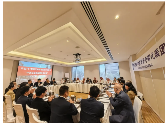 博石教育精心筹备,本次活动得到了 15 家中东两国政府单位和商会的鼎力支持,包括阿布扎比投资办公室、沙特国家投资部、沙特利雅得商会、迪拜商会、中国阿拉伯非洲商务联盟、阿联酋皇家资本集团、PIF 沙特公共投资基金、沙达控股集团家族、沙特粤商会、中国建材中东北非公司、杰贝阿里自贸区、KEZAD 阿布扎比哈里法经济开发区、阿联酋华人华侨联合会、迪拜龙城以及迪拜龙城总商会等。FET 智库企业家代表团的 18 位代表受到了近 50 位中东代表和华人华侨的热烈欢迎与盛情款待。期间举办 10余场项目洽谈会,不仅为两国企业间以及政商间在金融、经济、产业、技术等领域的经贸合作搭建了精准对接的桥梁,还进一步强化了中沙、中阿经贸合作的紧密联系,有力推动了双方合作向纵深发展,为未来的合作共赢奠定了坚实基础。