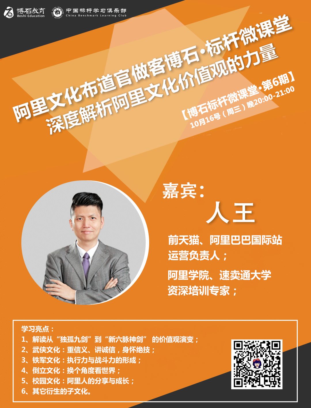 长期任职于阿里巴巴集团,曾担任阿里学院培训项目负责人、天猫运营团队leader、阿里巴巴国际站项目运营专家等,也是阿里巴巴高校电子商务课程的主要开发讲师。